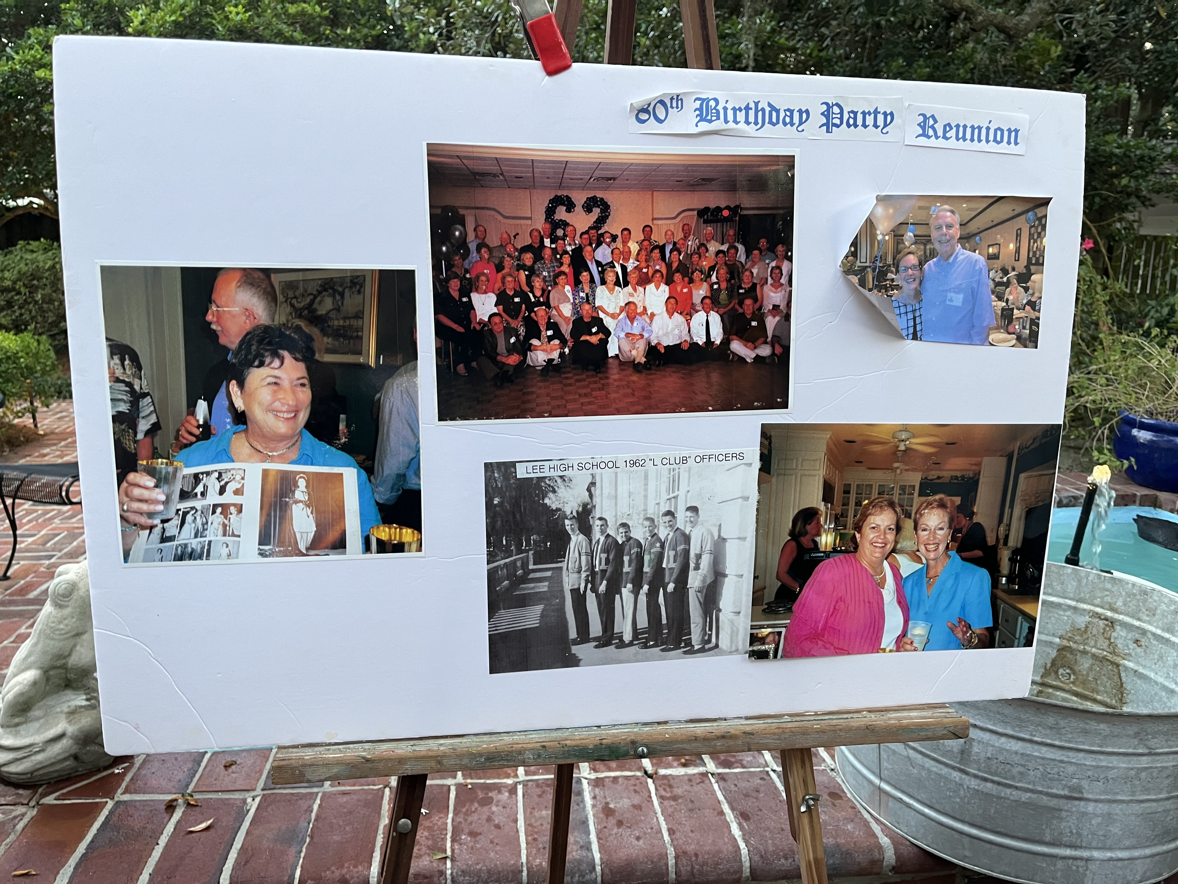 We owe a debt of gratitude to our photography volunteers, Libby Girlinghouse Bernard, Jack Slemenda, and Margaret DeHoff Stanley. Thanks to their efforts, all of us, whether we were there or not, can enjoy seeing our classmates again as well as the beautifully decorated home and environs of our gracious hosts, Billy & Mary Dudley Schmidt. Delicious hors d’oeuvres and an open bar, combined with old friends reminiscing and catching up on current events, made for an enlivened evening that was capped off with hugs and fond farewells tempered with anticipation looking forward to the next time!